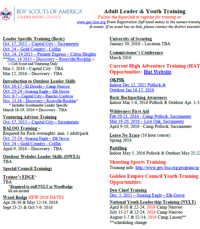 Local districts across the council provide classroom and outdoor training to all leaders. Many courses are available on-line, as well. Not sure what training you need? Are you a Trained Leader?