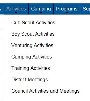 - E-list - a new way to find out the latest on topics that you're interested to: Leadership Training, STEM events, High Adventure Training (HAT), new program opportunities: Cub Scouts, Boy Scouts, Venturing and more! - Coming in April
